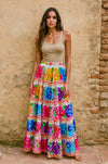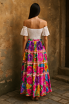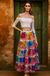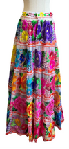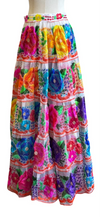 This Mexican vintage embroidered floral skirt from the 50s features a vibrant and colourful embroidered florals.  Had a 2 inch waistband. Made from a net woven fabric, it has a pleated full silhouette, making it a perfect pairing  with a simple top.