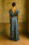 Slay, 30s blue and silver lamé bias cut dress with silver stars