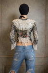 Perry, embellished Victorian lace jacket with hand painted motif