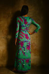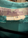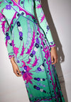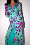 Discover a rare and collectible piece of fashion history with the Emilio Pucci silk jersey wrap over jumpsuit from the 1960s. Featuring a beautiful Aqua background and floral design, this jumpsuit boasts a wrap over design with button and hook fastening, front zip for a perfect fit, and comfortable long sleeves. In excellent condition with original label. This is a well documented piece with timeless appeal.