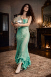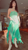 Esmeralda, 90s bias cut chiffon beaded dress with handkerchief silhouette