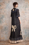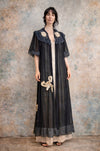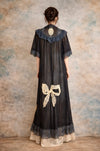 Gina, 30s black chiffon and lace robe with cream lace bows