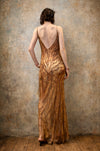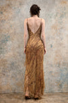 Glory, vintage animal print beaded bias cut silk chiffon dress