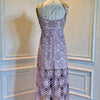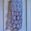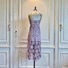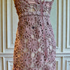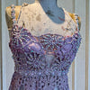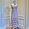 This rare1960s couture dress showcases masterful craftsmanship with its blush pink and silver crochet construction adorned with jewelled embellishments across the bust and straps. The intricate crochet work is expertly backed with nude net, creating sophisticated layering and graceful drape. Featuring delicate beaded straps and the original structured brazier, this piece delivers both visual impact and exceptional fit. A museum-quality vintage garment.