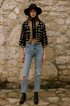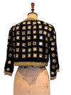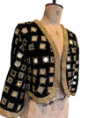Lola, 70s bohemian black velvet mirrored jacket with gold thread