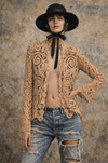 This Edwardian ecru hand-made lace jacket exemplifies exquisite craftsmanship with its intricate decorative design. Featuring long bell sleeves and a loose fit, it combines historical elegance with modern wearability, making it a versatile addition to any wardrobe. Ideal for a denim pairing or over a long slip dress. In Excellent condition.