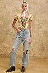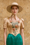 Martha, Victorian silk boned bodice with velvet ribbon flowers