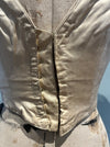 Martha, an incredible original Victorian silk bodice features a unique mix of exceptional craftsmanship and comfort. Its short cap sleeves, sweetheart boned bodice, and intricate velvet floral design create a beautiful and versatile look. The adjustable hooks in the back also provide flexibility in fit. A true gem for 18th C enthusiasts . Has its original boning and label.