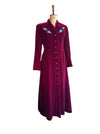 Michéle Pernetta, 80s burgundy velour cat eye long coat