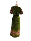 One of a kind reworked original Victorian set in olive green silk velour with delicate floral accents.
