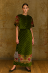 Olivia, reworked Edwardian olive green floral velour skirt and jacket