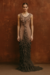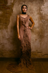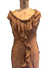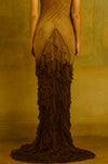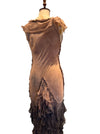 Expertly handmade and one-of-a-kind, the Anita dress offers a unique twist on vintage fashion. The sleeveless design and bias cut fishtail silhouette create a stunning, figure-flattering look. With layers of hand-dyed muslin in an ombré pattern, this dress is truly a work of art.