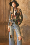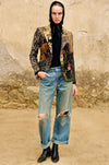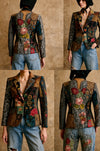 This well cut 70s single breasted jacket is a stunning reworked jacket and one-of-a-kind piece that features a medley of rare and collectible beadwork and embroidery from the 18th and 19th century. With long sleeves, lapel's, and a vintage two-tone button, this jacket exudes elegance and sophistication.