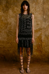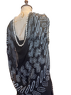 Zandra Rhodes, Rare 70s navy print silk slip and ribbon beaded dress with pearl trim