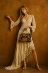 Virginia, original 40s embroidered floral handbag with brass etched cage
