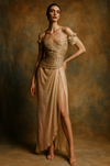 Zandra Rhodes, 70s gold lamé and chiffon draped dress with petal ombré skirt